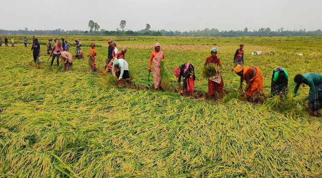 মান্দায় সাত বিঘা জমির ধান জোর করে কেটে নেওয়ার অভিযোগ